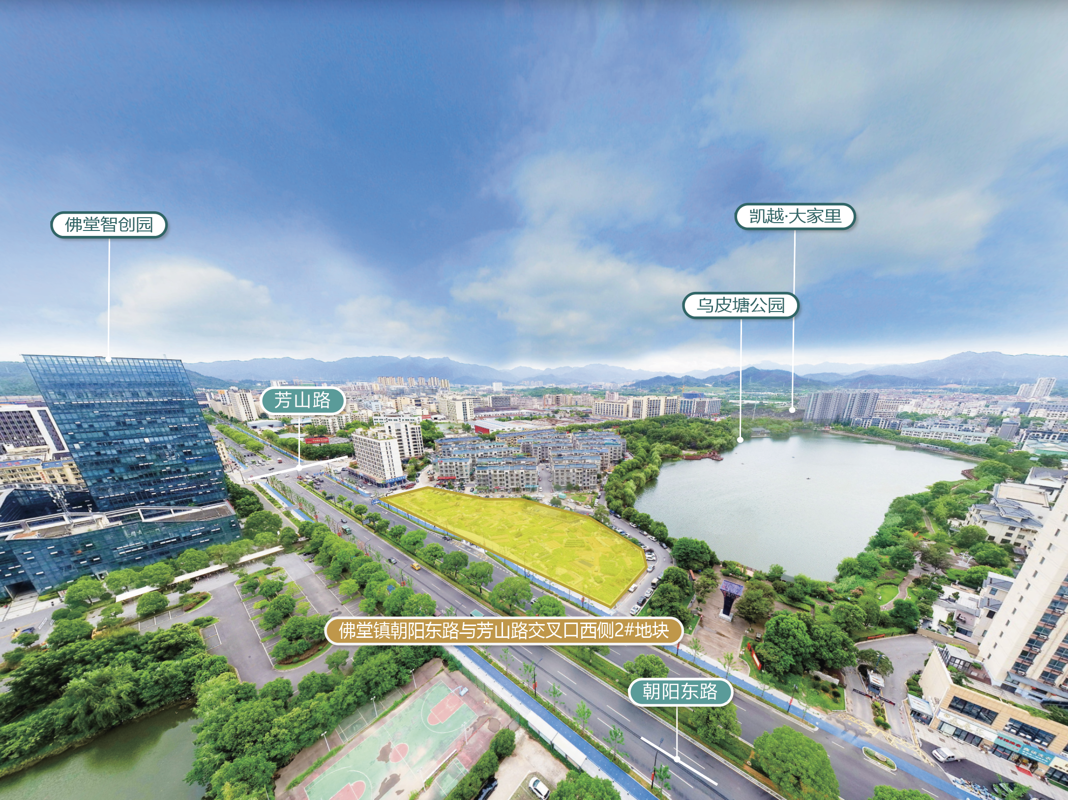 地块位于佛堂镇,朝阳东路与芳山路交叉口西侧。